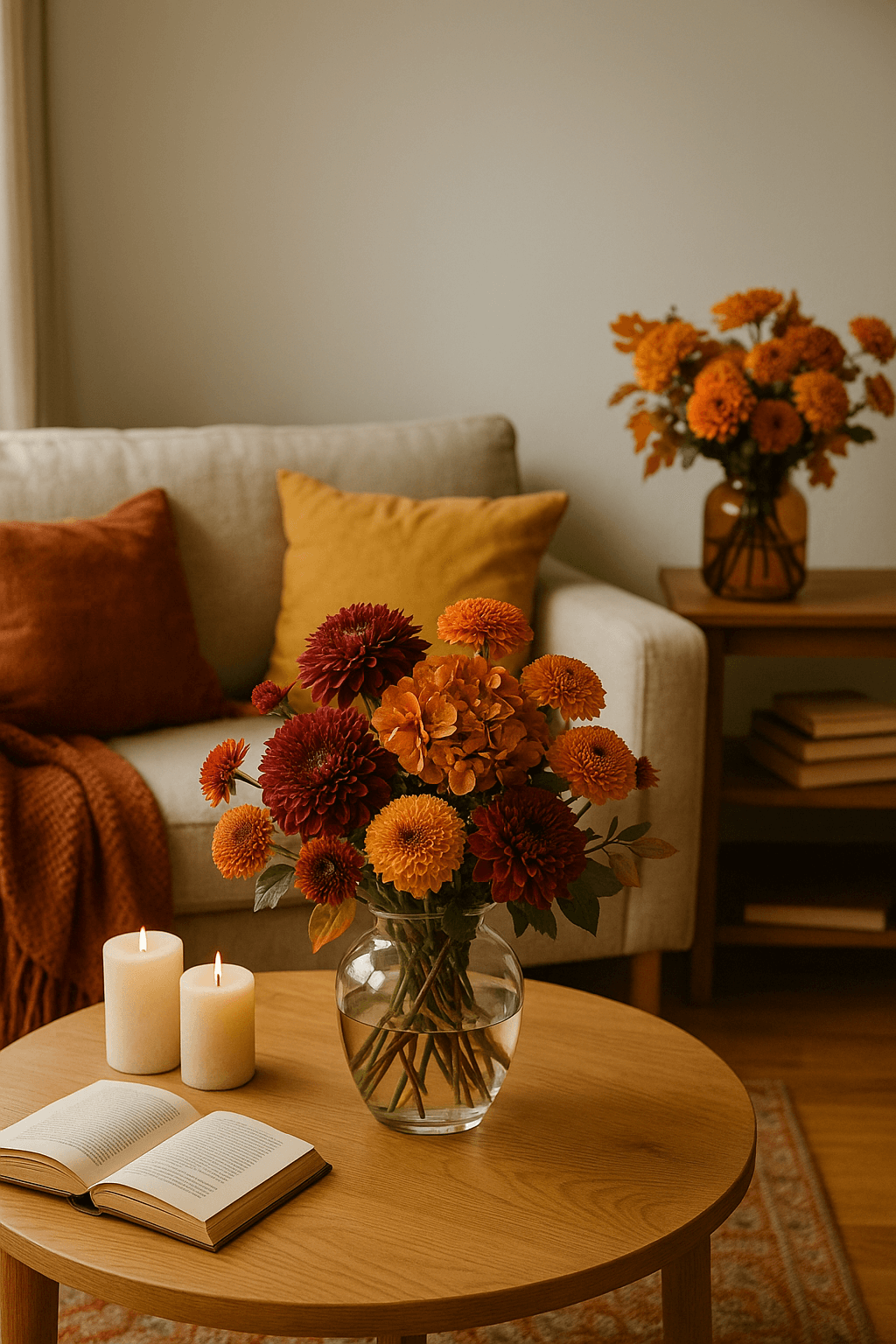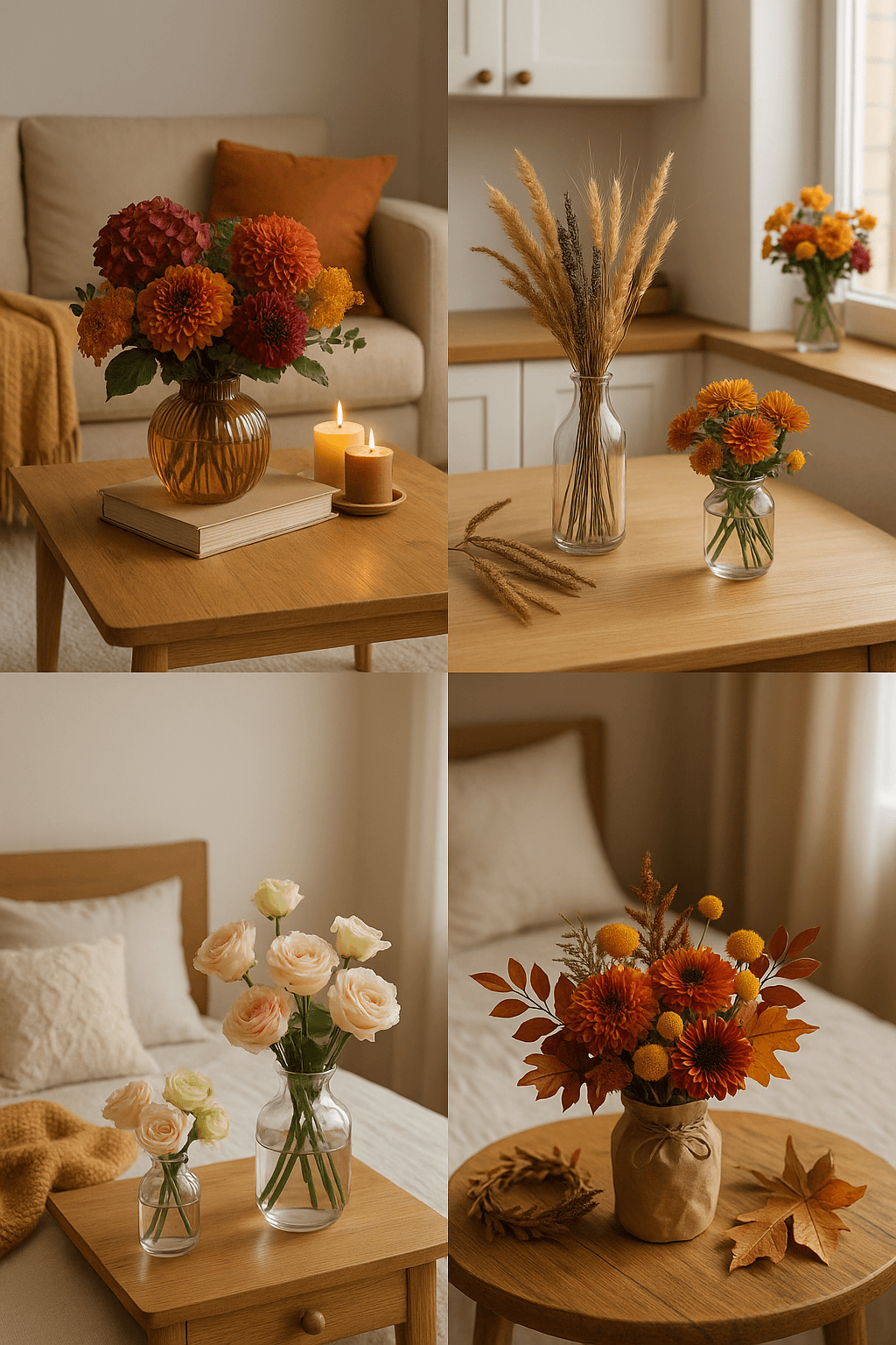Не бойтесь экспериментировать с цветами и их размещением, ведь осень — это время для ярких акцентов, уютных моментов и создания неповторимой атмосферы уюта и тепла.