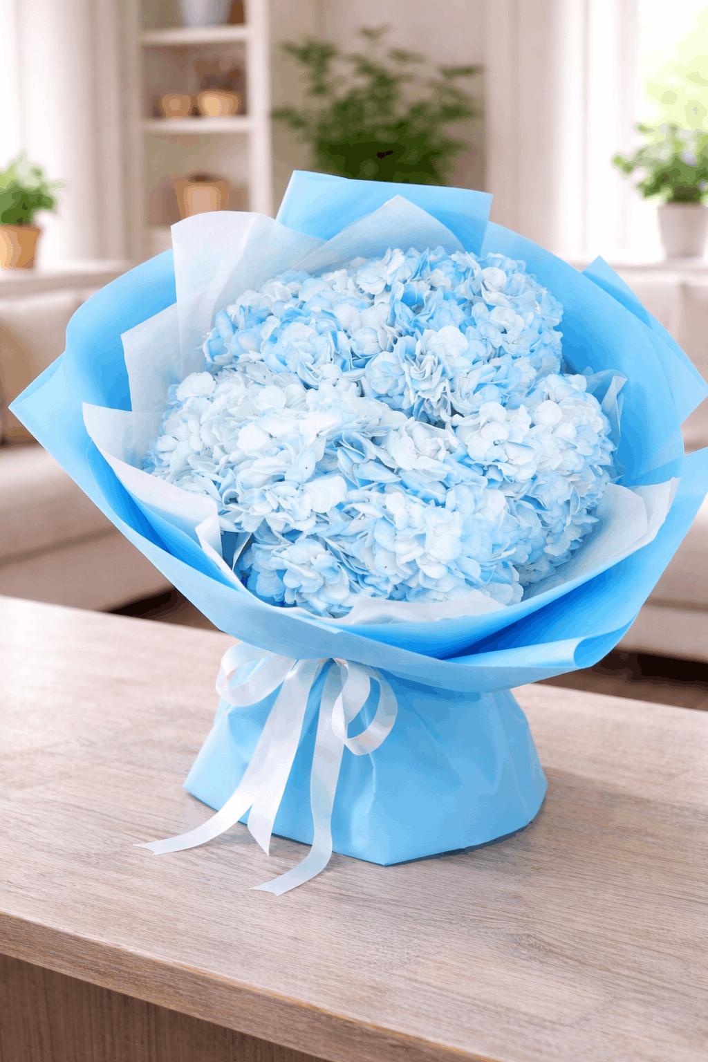 Гортензии - розовые и голубые, от 12 400 ₸. Один шарообразный цветок гортензии создаёт визуальный объём, сопоставимый с букетом из 7–9 роз. Это делает гортензии одним из самых «выгодных» по внешнему виду вариантов в бюджетном сегменте.